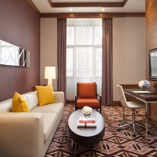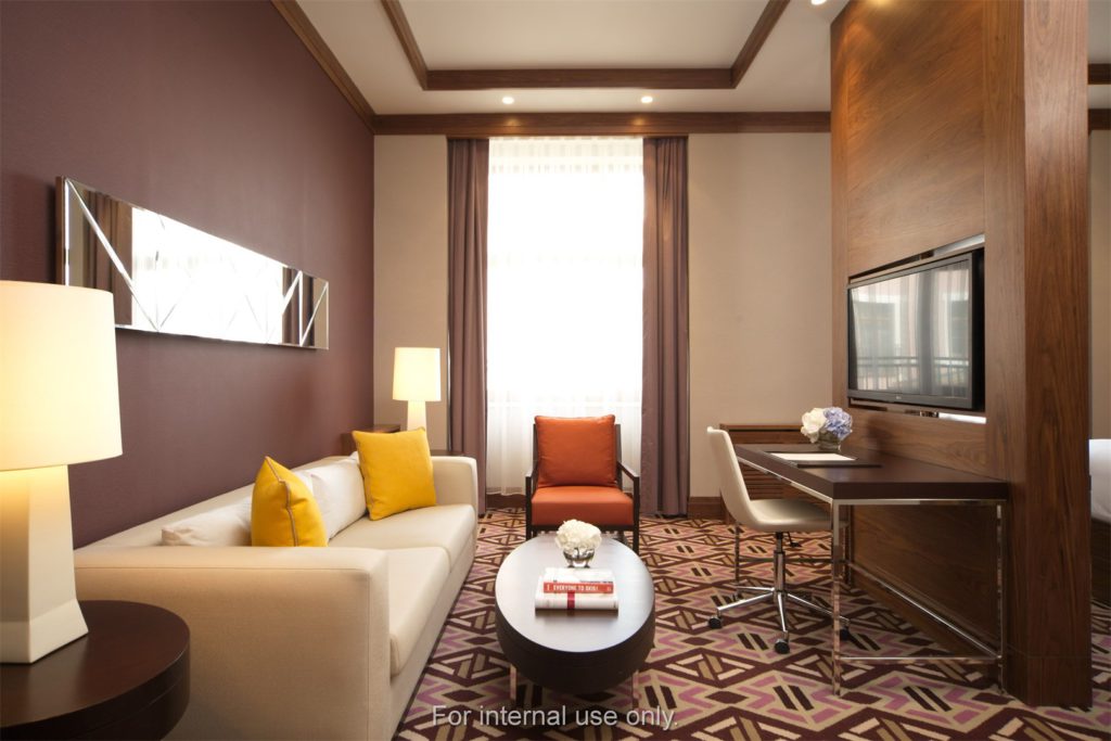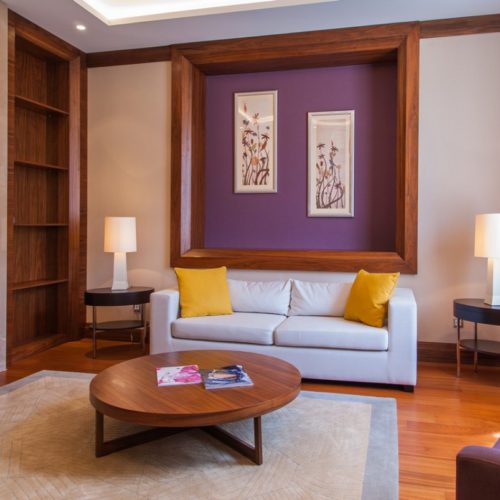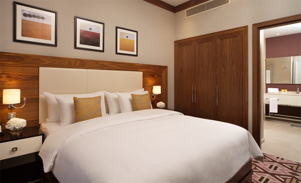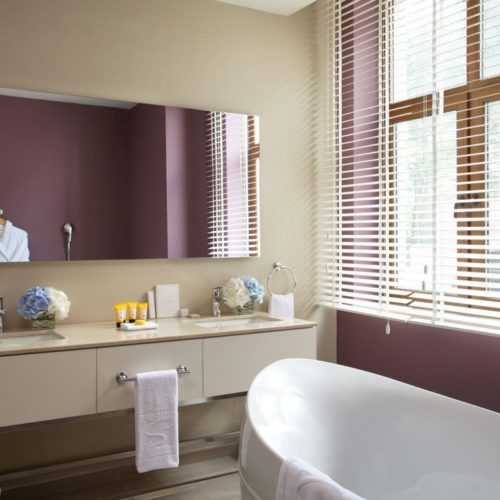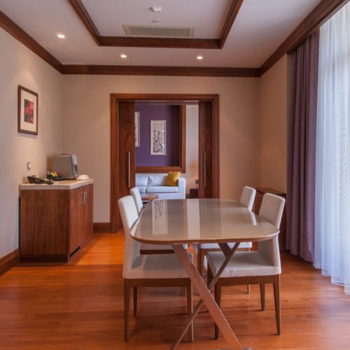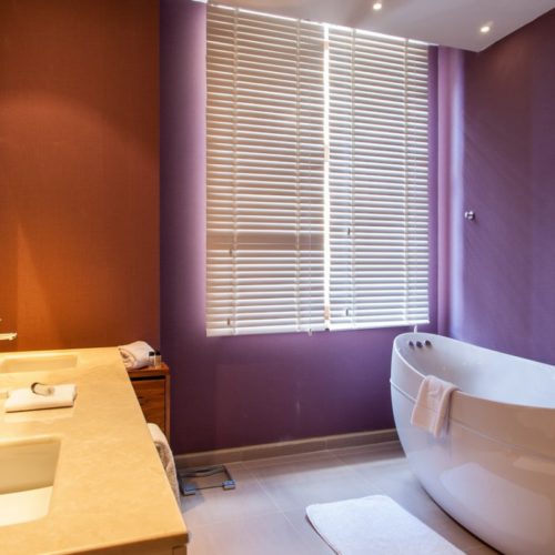 Общая площадь составляет 82 кв.м. Двухкомнатный вариант имеет вид на двор отеля. На балконе присутствуют шезлонги и столик. В спальне есть 1 большая двуспальная кровать. В гостиной присутствует камин, который придает особый уют атмосфере. Присутствует обеденная зона. В ванной комнате есть ванна-джакузи. В просторную гардеробную можно поместить все вещи. Смотреть любимые фильмы будет удобно на современном телевизоре.