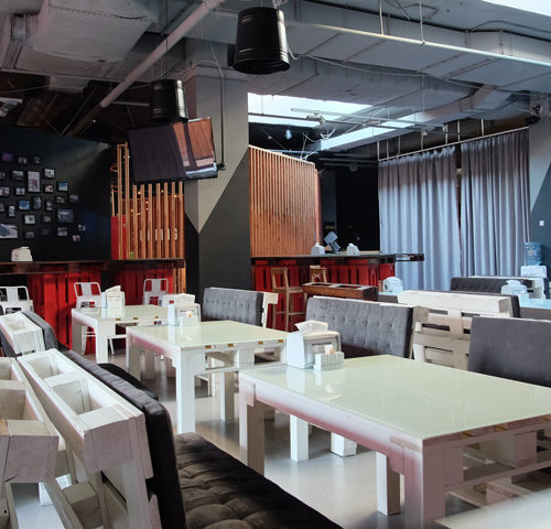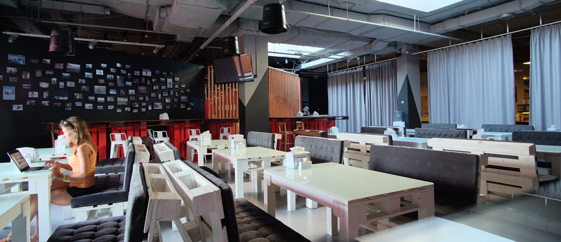 Первый этаж имеет красочное воплощение. На всей территории есть быстрый Wi-Fi. Есть лобби-бар, где можно отведать ароматную домашнюю еду, а также бар, в котором часто бывают зажигательные вечеринки. Есть игровая область для взрослых и детей, где можно зарядиться положительными эмоциями: сыграть в пинг-понг, Sony Playstation, аэрохоккей и т.д. По вечерам можно посмотреть разные фильмы в кинотеатре.
