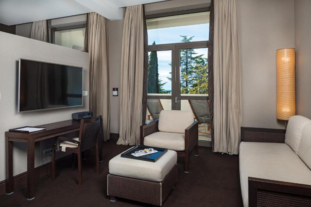 RODINA Grand Hotel & SPA 5* — вариант премиум-класса для тех, кто ценит превосходный отдых. Расположился отель на побережье Черного моря в Сочи в окружении тропических садов. Гостей приятно удивит собственный кинотеатр. Здесь можно сыграть в бильярд, теннис. Есть места для игр в волейбол и баскетбол. Удобно будет перемещаться с помощью гольф-каров.