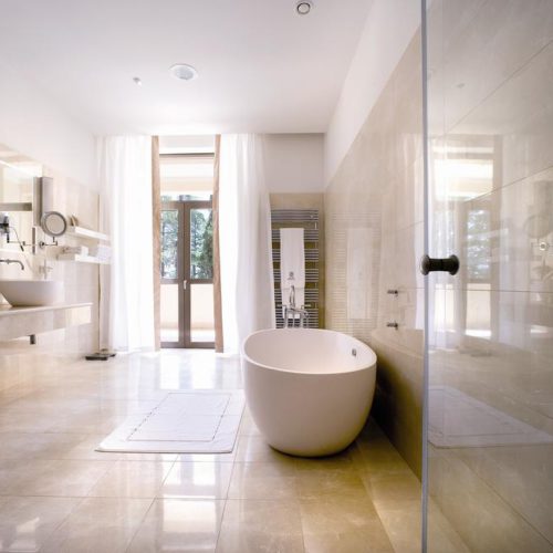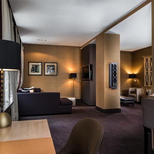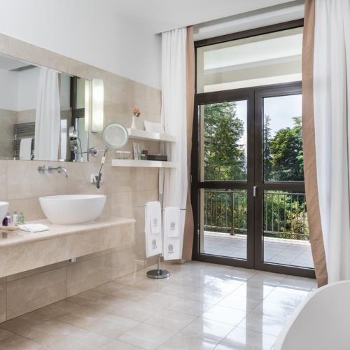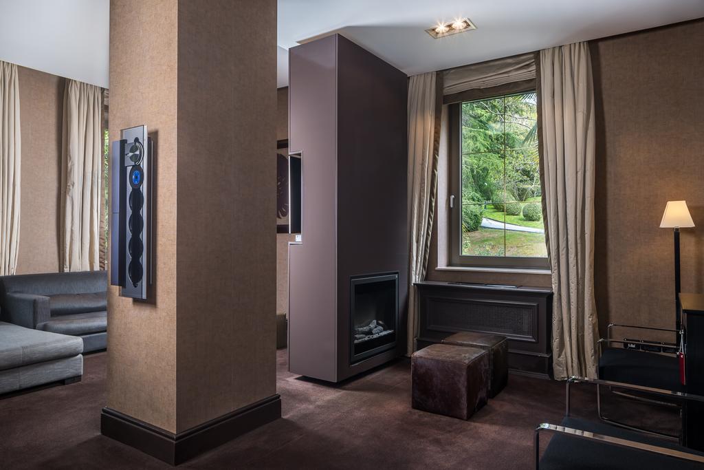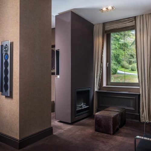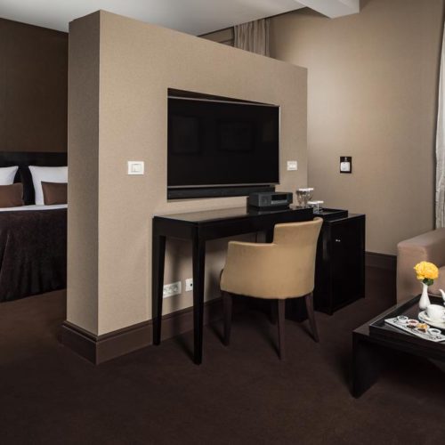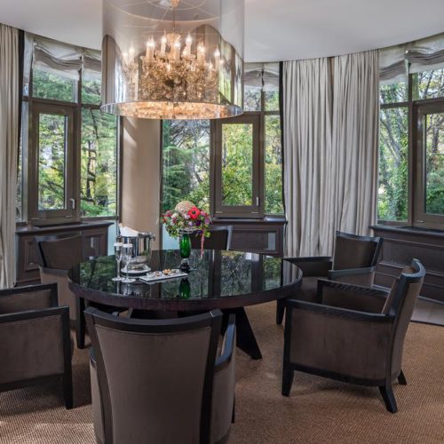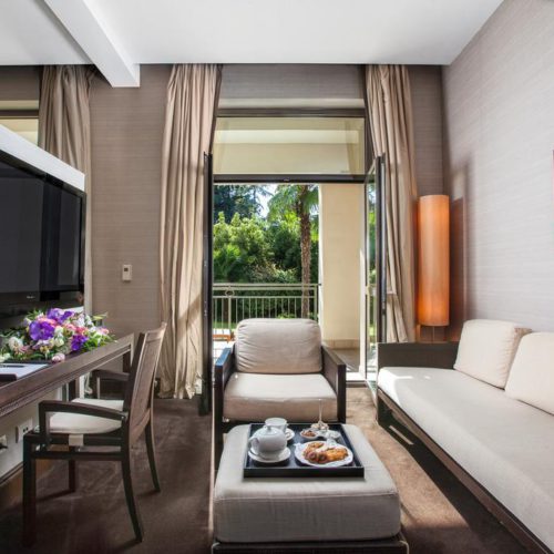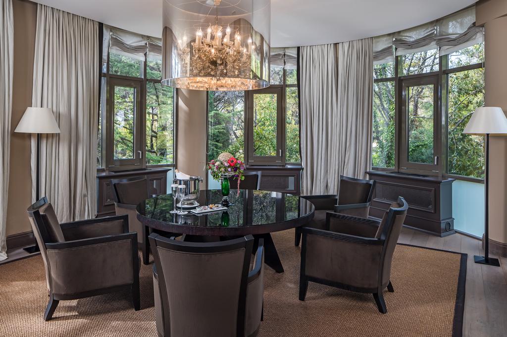 Широкое спальное место. Есть гостиная область и кабинет. Из зала округлой формы открывается вид на море и парк. Душ с гидромассажем.