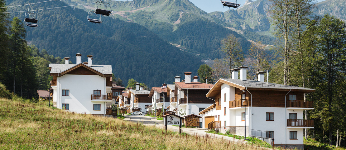Всего есть 9 уютных шале со всеми удобствами, кухней и гостиной. В домиках могут разместиться 9-15 человек. Есть номера категории «Стандарт» и «Супериор». Если потребуется дополнительное место, то можно будет его организовать по запросу. Сами комнаты выполнены в современном стиле, имеют качественный интерьер, место для хранения лыж и инвентаря. В шале есть гараж на две машины. Можно приехать на собственном транспорте или арендовать автомобиль в Сочи. Менеджеры отеля помогут забронировать нужные четырехколесное средство.