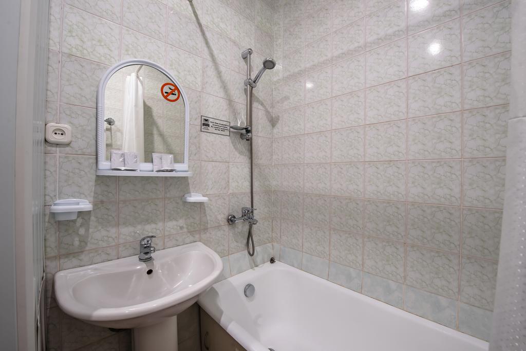 2-комнатное расположение. Есть гостиная, спальня. В ванной необходимые принадлежности. Присутствует мягкая мебель, TV, холодильник, тумбочки, стол. Из спальни и гостиной можно выйти на балкон.