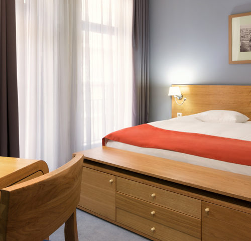 омфортный номер имеет площадь 25 кв.м. Есть одна просторная двуспальная кровать «King-size» или 2 полутороспальные кровати. Здесь будет уютно одному или двум гостям. Стильный дизайн, тщательно продуманные детали придутся по душе каждому путешественнику. Во вместительном гардеробе можно расположить всю одежду. Жидкокристаллический телевизор четко показывает различные программы. Благодаря высокоскоростному интернету вы всегда будете на связи с родными и близкими. Ванна оснащена подогреваемым полом. Есть все необходимые средства для принятия душа, фен, тапочки. В номере может быть оборудование для людей с ограниченными возможностями.