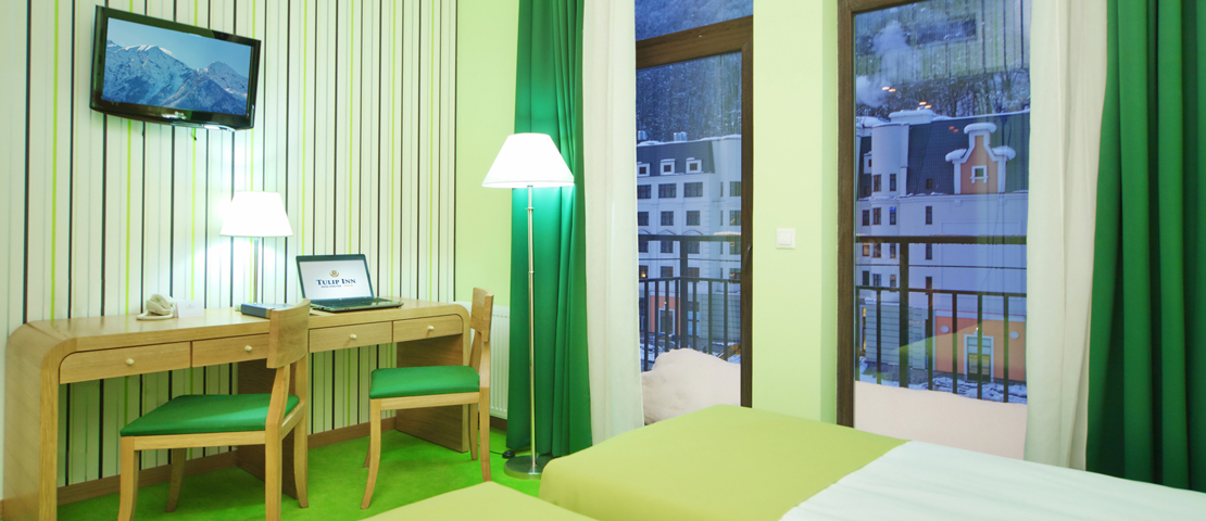 Все номера отеля просторные, имеют стильный современный дизайн с тщательно продуманными деталями. Есть вместительный гардероб, жидкокристаллический телевизор, высокоскоростной интернет и другие элементы для уютного времяпровождения. В отеле можно посетить салон красоты, фитнес-центр, сауну. Есть специальная комната для хранения и сушки лыжного инвентаря. Забронировать номер можно оперативно на сайте. Скидки и акции приятно удивят всех путешественников. Проведите свой идеальный отпуск в Tulip Inn Rosa Khutor 3*.