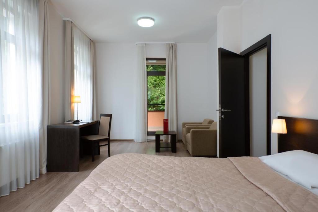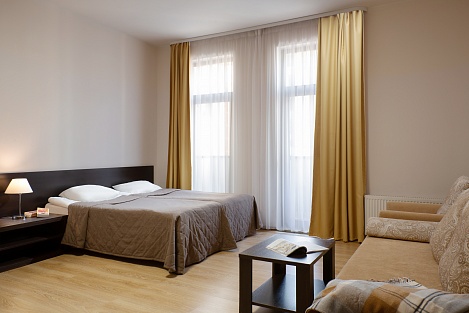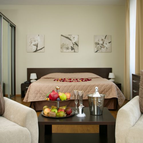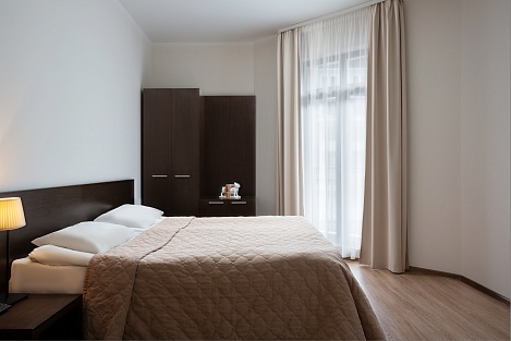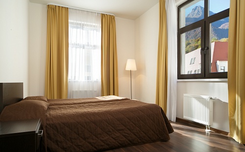 Гостиничные номера светлые и уютные. Внутри есть все необходимое: эргономичные места для сна, чистая ванная с душем/душевой кабиной, всегда свежие полотенца, просторный гардероб, специальное отделение для лыж и горнолыжных снаряжений, бесплатный Wi-Fi и т.д. Стильное оформление в нежных тонах поможет почувствовать себя, как дома. В отеле присутствует бизнес-корнер, камера хранения багажа, есть торговый автомат с закусками, детская площадка. Бронируйте номера заранее по выгодным ценам. Приятным моментом станут скидки для всех клиентов.