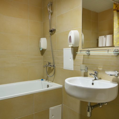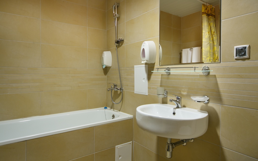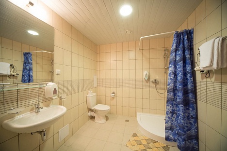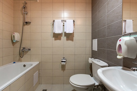 - современная ванная комната с душем или душевой кабиной, комплект полотенец;