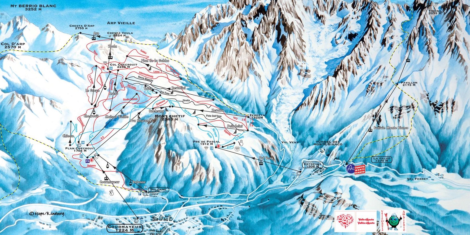 Карта трасс горнолыжного курорта Курмайёр Италия