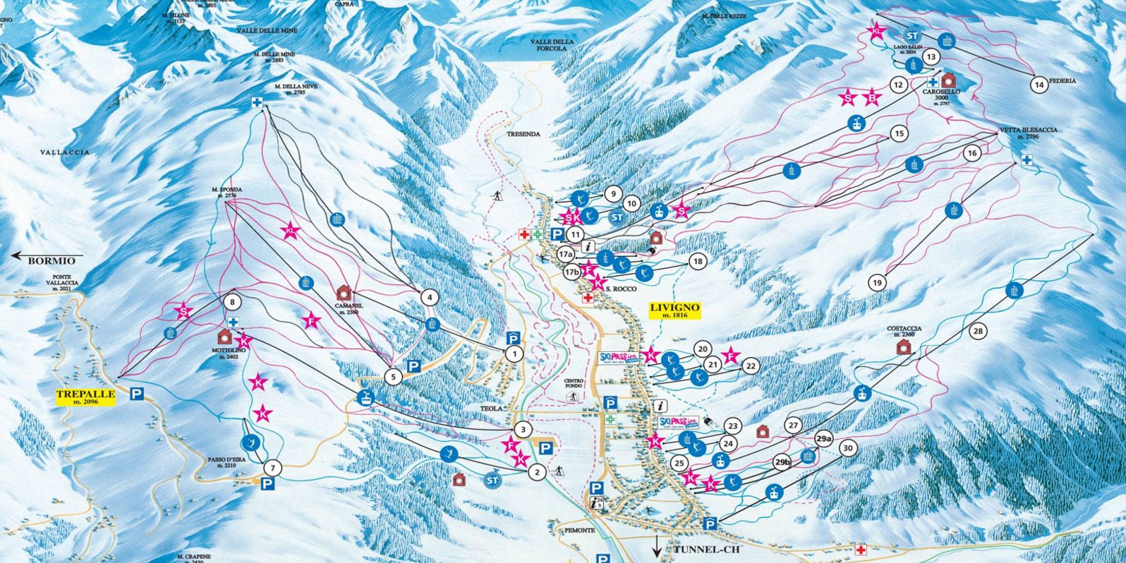 Карта трасс горнолыжного курорта Ливиньо