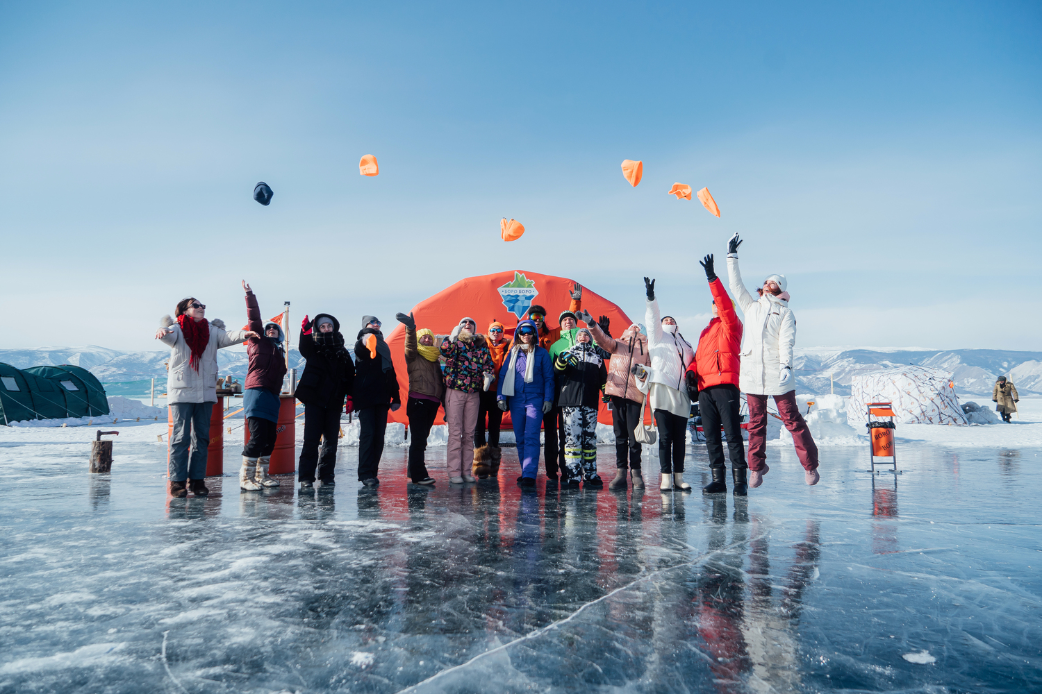 Сделать памятные фотографии на Боро-Боро можно не только в роли полярников. Здесь много уникальных и живописных локаций: например, растущие прямо во льду тюльпаны и ледовый тоннель. Есть активные развлечения на любой вкус: катание на финских санках, ледовый боулинг, коньки, хоккей… А на память о визите мы предлагаем отправить отправить открытку из самого сердца Байкала! На обед вас ждет вкуснейшая местная кухня: копченая ангарская форель, уха и сибирские разносолы.