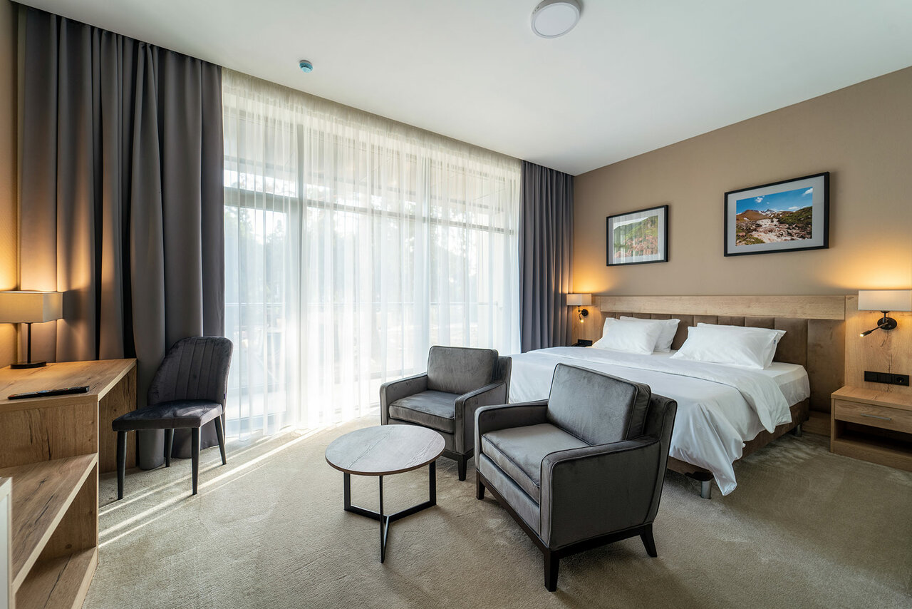 Современный отель на берегу моря. Здесь есть всё, что нужно для комфортного размещения: продуманный до мелочей интерьер, предупредительный персонал, ресторан с сытными блюдами, два бассейна (один в помещении, один под открытым небом).