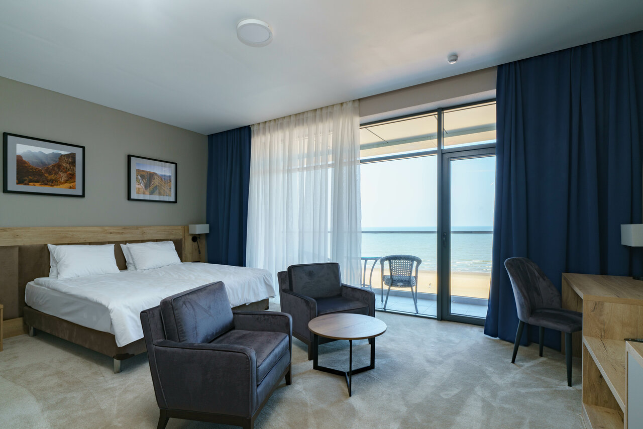 Этот современный отель расположен на первой линии, всего в 200 метрах от Каспийского моря, и предлагает гостям идеальное сочетание городской инфраструктуры и близости к природе. Номера оформлены в стиле сдержанной роскоши. На территории отеля — спа-комплекс с хаммамом, бассейном и сауной, а также ресторан с террасой.