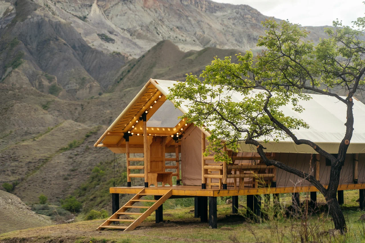Глэмпинг расположен в Гунибском районе, в окружении первозданной природы. На территории площадью 2 гектара разместились просторные шатры с уютным интерьером, оборудованные всем необходимым для комфортного отдыха, включая обогреватели, электропростыни и индивидуальные санитарные блоки. Гости могут насладиться панорамными видами на горные пейзажи, прогуляться по фруктовому саду или расслабиться в бане с сибирским чаном. Villa Memory — идеальное место для тех, кто ценит гармонию с природой, не отказываясь от удобств премиального уровня.
