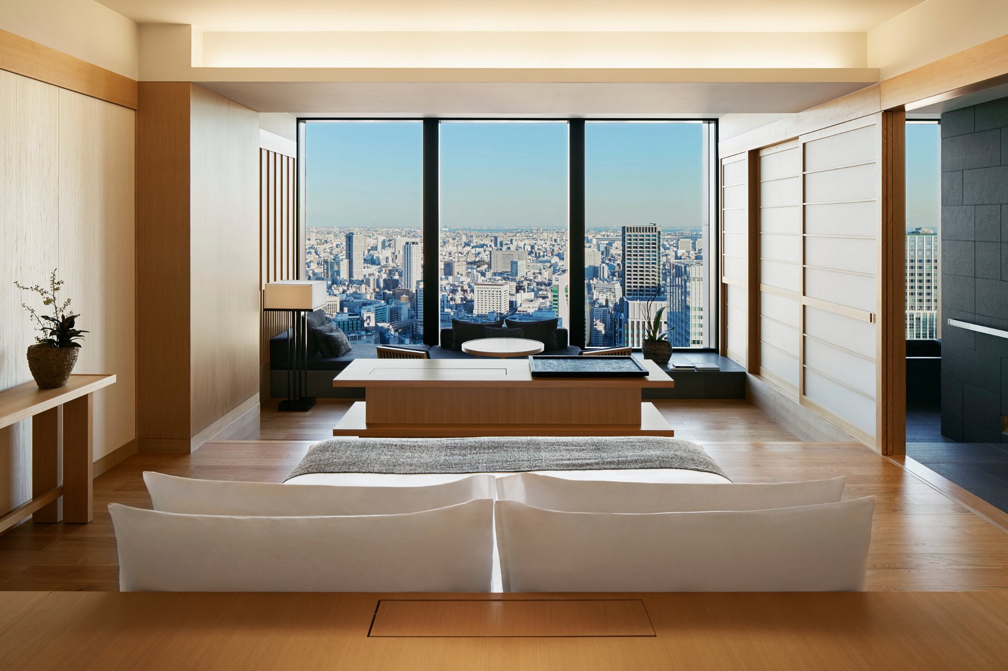 Расположенный в центре Токио, элитный отель Aman Tokyo предлагает просторные люксы с отдельными зонами для проживания, обедов и сна – с панорамными окнами и фантастическими видами на город. Отель сочетает современный дизайн с традиционными японскими элементами, популярен среди мировых звезд.