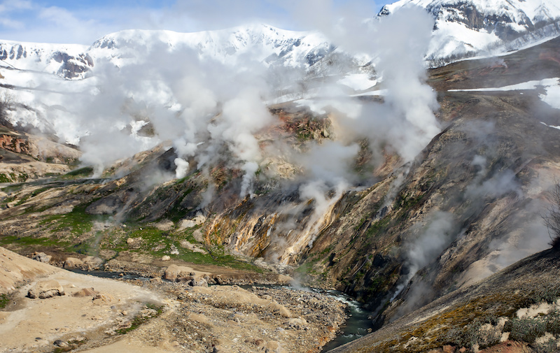 Вулкан высотой 2323 м находится в 70 километрах от Петропавловска-Камчатского. Это активный вулкан, где иногда можно наблюдать лавовые потоки. Но и в период, когда Мутновский спит, здесь есть на что посмотреть: обширные фумарольные поля (трещины или отверстия, из которых поднимаются столбы горячего газа) придают пейзажу невероятный колорит. До вулкана мы доберемся на джипах, насладившись живописными окрестностями.
