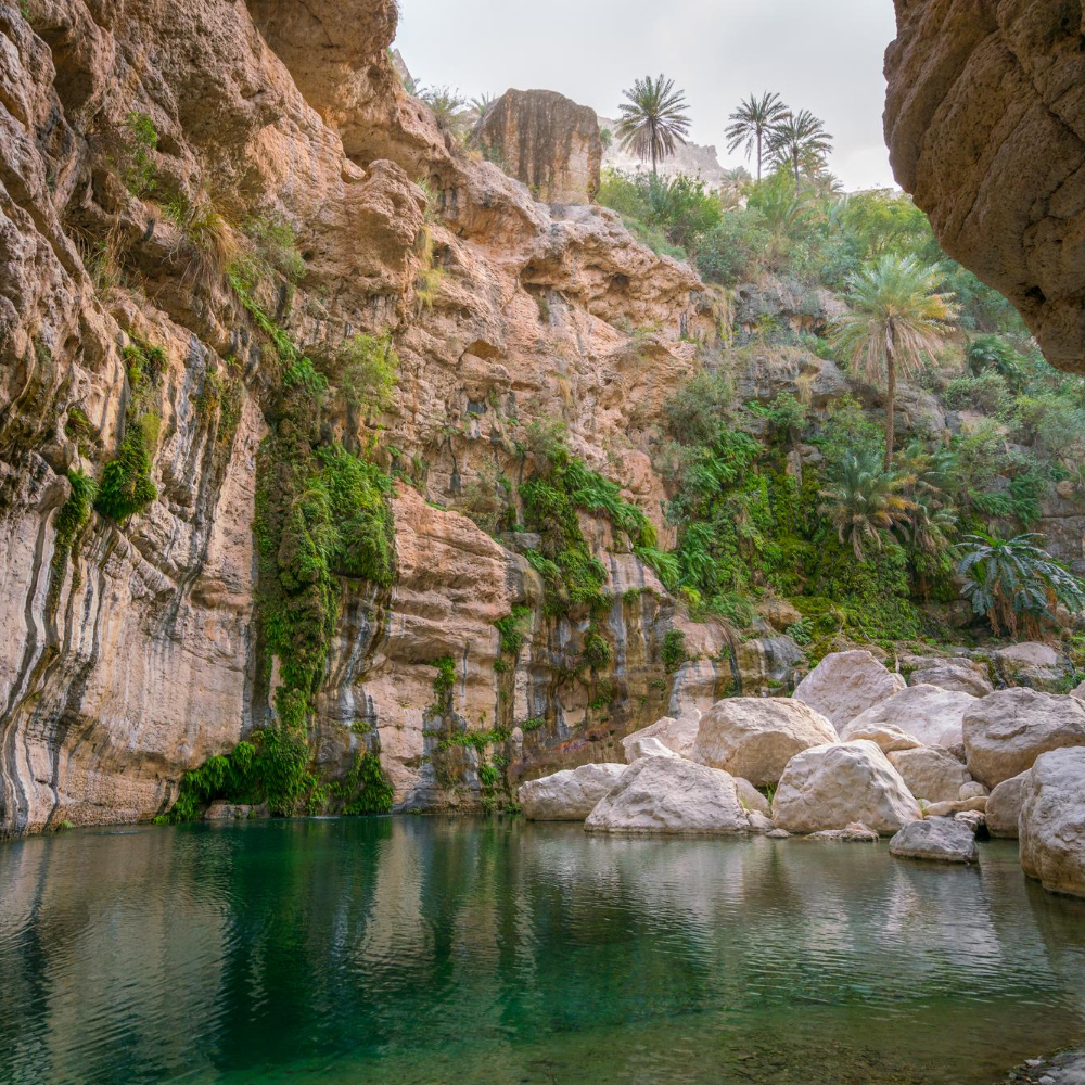 В Омане пейзажи словно сменяют друг друга в калейдоскопе: барханы Вахибы сияют золотом на рассвете, между скал прячутся зелёные оазисы с природными бассейнами, а на плато Джебель Ахдар, на высоте более 2000 метров, расцветают террасы с гранатами и розами. Путешествие становится чередой живых, наполненных ощущениями сцен.