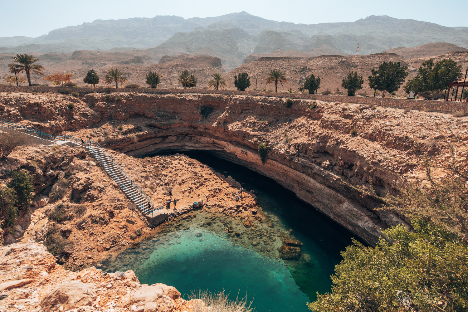 Персональный гид встретит вас по прилету. Предлагаем сразу же отправиться в приключенческий джип-тур! Вас ждёт захватывающий маршрут: панорамные виды на Залив Омана и серпантины, ведущие к чудесам природы. Первой остановкой станет карстовая воронка Бимма — глубокая природная чаша с прозрачной морской водой. Местные верят, что она образовалась от падения метеорита, но на самом деле её создали подземные известняковые процессы. Это впечатляющее место словно соединяет два мира — сушу и океан. Далее наш путь ведет к Вади Шааб, одному из самых живописных ущелий региона. Вы отправитесь в несложный треккинг по каньону, где чередуются изумрудные водоёмы, скалы и пышная растительность. По желанию можно пройти к скрытой пещере с водопадом, куда можно попасть, лишь проплыв через узкий скальный проход.