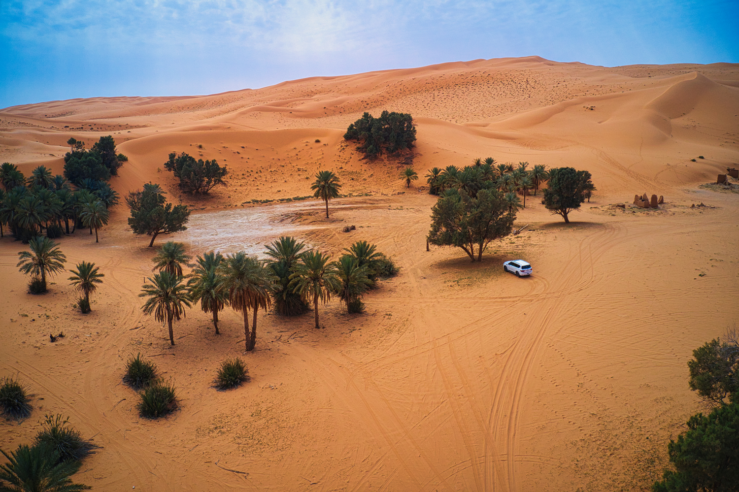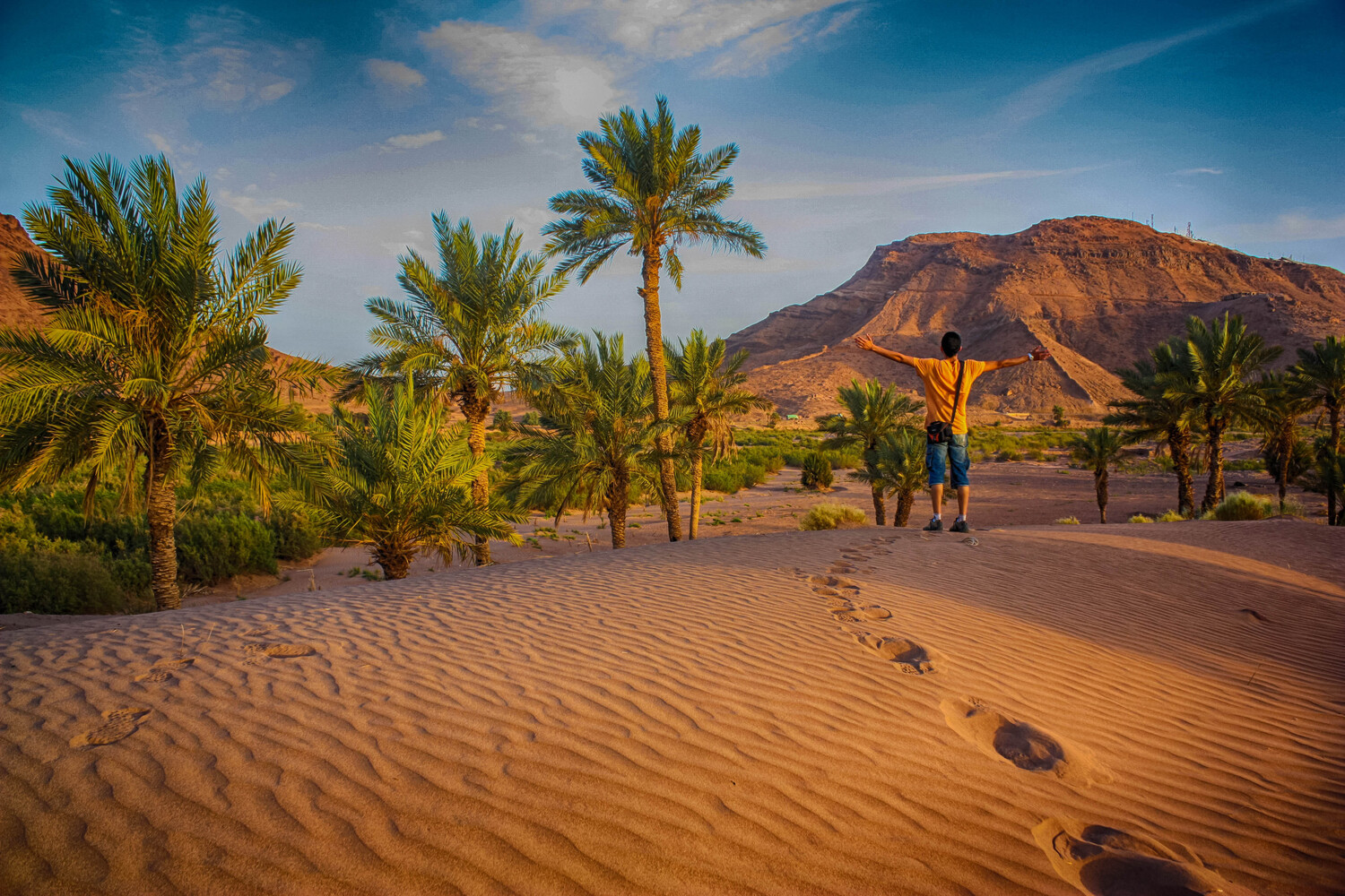 Рядом находится Вади Тиви — долина, в которой среди пальмовых рощ разбросаны традиционные деревни. Здесь до сих пор используют древнюю систему фаладжей — подземных каналов, по которым вода поступает из гор в дома и сады. Сегодняшний маршрут завершится в пустыне Вахиба Сэндс, где дюны будто оживают в лучах заходящего солнца. Цвет песка меняется от белого до тёплого золота и почти чёрного. По прибытии — размещение в кэмпе и ужин у костра. Ночь в пустыне дарит особенное ощущение простора: ни одного лишнего звука, только звёзды над головой и мягкий шелест песка под ногами.