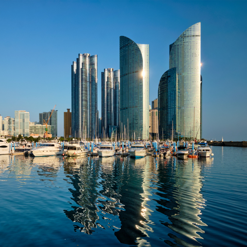 Ближе к полудню город раскроется перед вами с высоты: канатная дорога Сондо проходит прямо над морем, открывая панораму побережья. С обзорной площадки универмага Lotte — того самого, что занесён в Книгу рекордов Гиннесса, — виден весь центр и Алмазный мост, сверкающий над бухтой. Днём можно пообедать в одном из ресторанов с видом на воду, а вечером отправиться к пляжу Хэундэ и острову Камелий — месту, где проходил саммит АТЭС. Здесь, у моря, Пусан уже не шумный и деловой, а мягкий, почти курортный: солнце садится за горизонт, отражаясь в стекле небоскрёбов, и город кажется бесконечным.