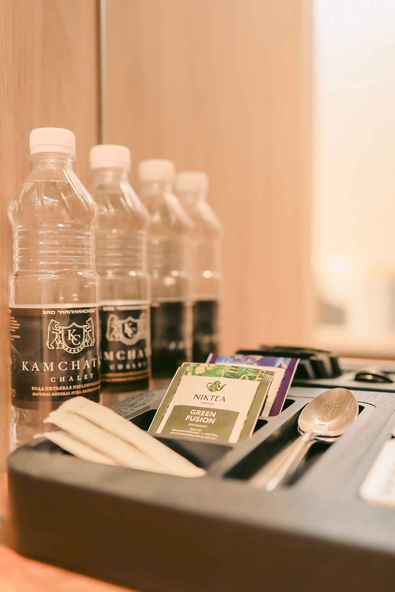 39 квадратных метров вмещают в себя спальную с кроватью формата EURO (200 на 200), диваном (может использоваться как дополнительное спальное место), телевизором и рабочей зоной, ванную с душевой кабиной и всеми необходимыми мелочами, большую гардеробную с гладильной станцией и просторный балкон с фантастическими видами на камчатскую природу, столиком и стульями. В номере категории Junior Suite вам будет комфортно, как дома, а круглосуточный Room Service позаботится о том, чтобы вы ни в чем не нуждались.