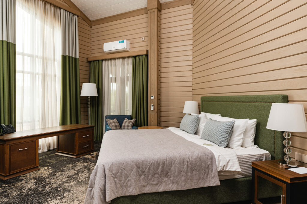 Площадь номера — 26 квадратных метров. Стандартное для отеля оформление: ненавязчивые оттенки, природные материалы и яркие цветовые акценты, которые делают интерьер еще более стильным. В номере есть кровать King Size, телевизор, чайная станция, письменный стол, журнальный столик, удобное кресло. В ванной комнате — всё необходимое: от уютного халата и пушистых полотенец до косметического зеркала и фена. Создать оптимальную «погоду в доме» можно с помощью системы климат-контроля и теплых полов.