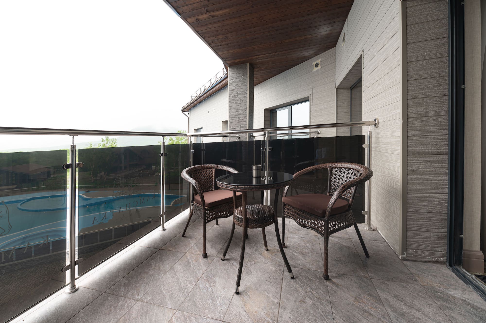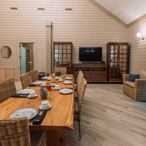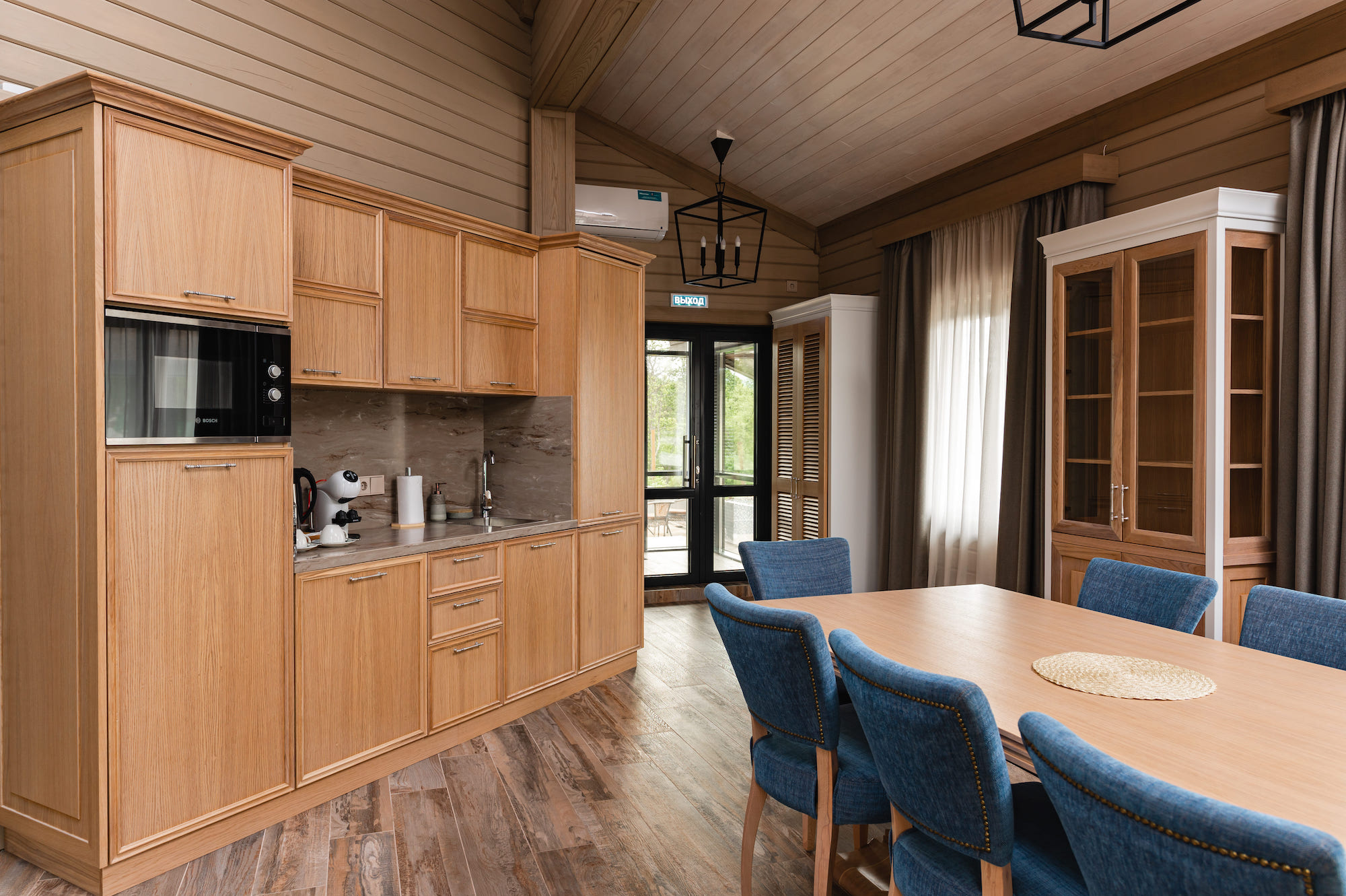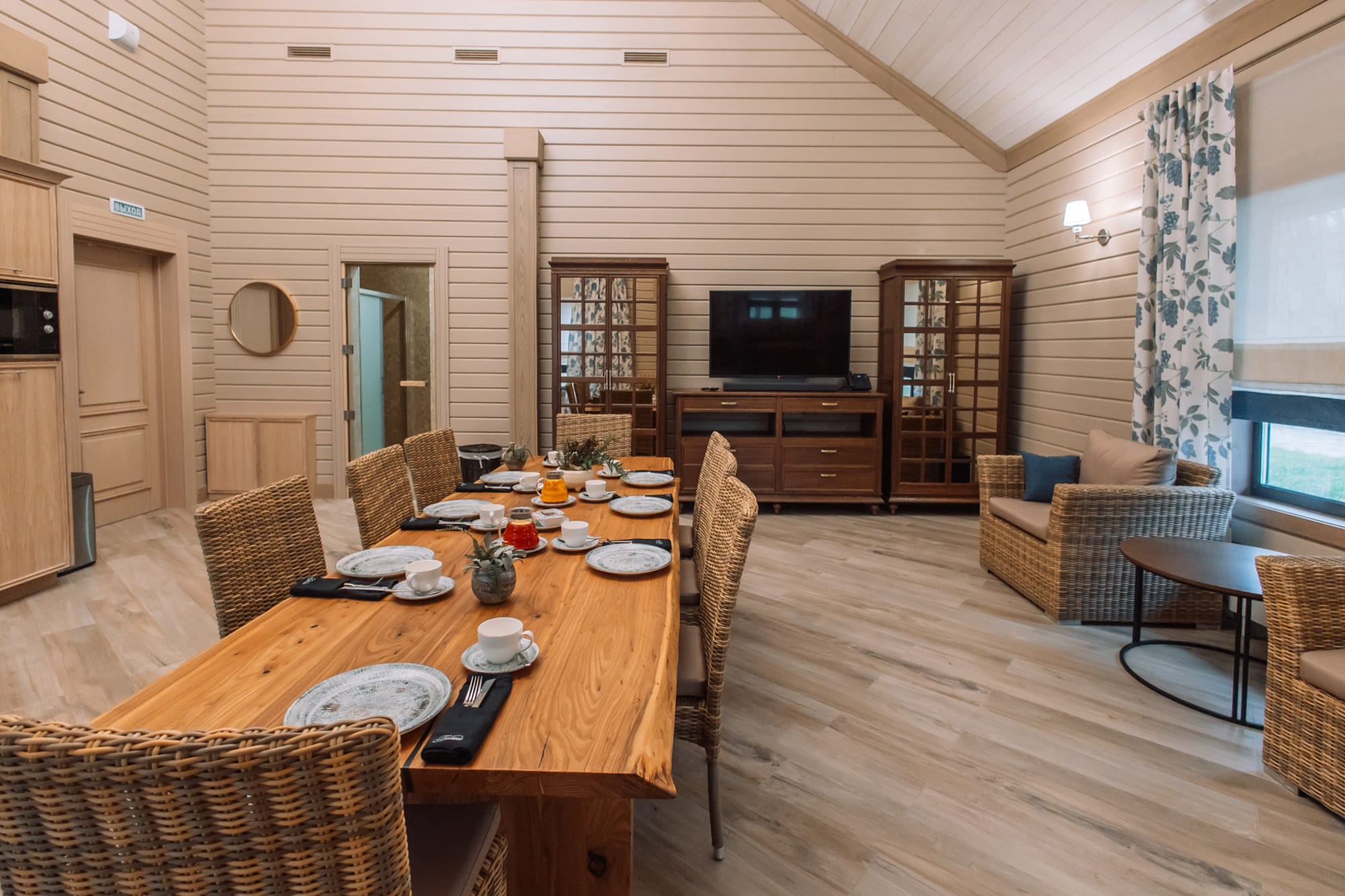 Роскошный вариант размещения для самых взыскательных гостей. Площадь отдельно стоящего шале — 100 квадратных метров, в нем две комнаты. Двуспальная кровать KING SIZE, диван, укомплектованная техникой и посудой мини-кухня со столовой зоной, кофейная и чайная станции. Особая «фишка» этого варианта размещения — собственный бассейн с термальной водой. Расслабьтесь в теплой воде, а затем отдохните на большой террасе, созерцая великолепие камчатской природы и забыв обо всех заботах.