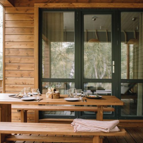 Одноэтажный коттедж с двумя комнатами, рассчитан на 2 гостей, есть 2 дополнительных места. Общая площадь коттеджа — 80 кв.м. В коттедже есть спальня с панорамными окнами, 2 санузла, гостиная с мягкой зоной и кухонной зоной, оборудованной всем необходимым: посудой и столовыми приборами, микроволновой печью, чайником. Также есть просторная терраса с шезлонгами. Предоставляются душевые принадлежности, фен, мини-бар. Есть телевизор и бесплатный Wi-Fi.