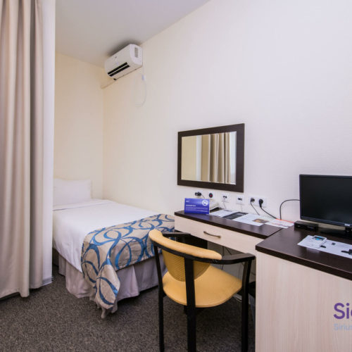 Уютно расположиться позволят 2908 номеров различных планировок. Они размещены в разных корпусах и соединяются между собой аллеями. Внутри каждого есть все необходимое для хорошего отдыха. Можно посмотреть любимый сериал или важный матч на телевизоре. Благодаря бесплатному Wi-Fi вы останетесь на связи с коллегами и домашними. Стильный интерьер в нежных оттенках будет настраивать на качественный отдых. Одно- и двухместные варианты комнат можно выбрать по желанию. При необходимости дополнительно устанавливается еще одно спальное место.