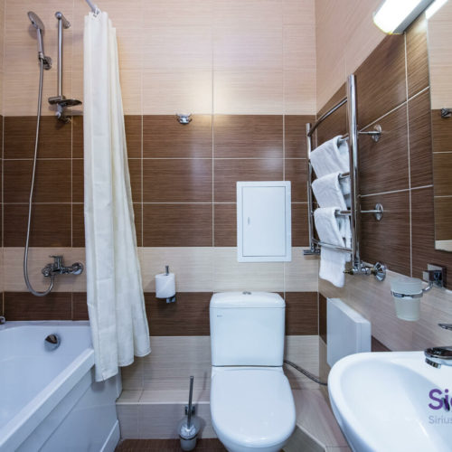 Есть 1 комната, кровать 900*2000 мм. Прочная изысканная мебель сделает путешествие непринужденным. Работает телевизор, кондиционер, мини-бар. Санузел вместе с ванной.