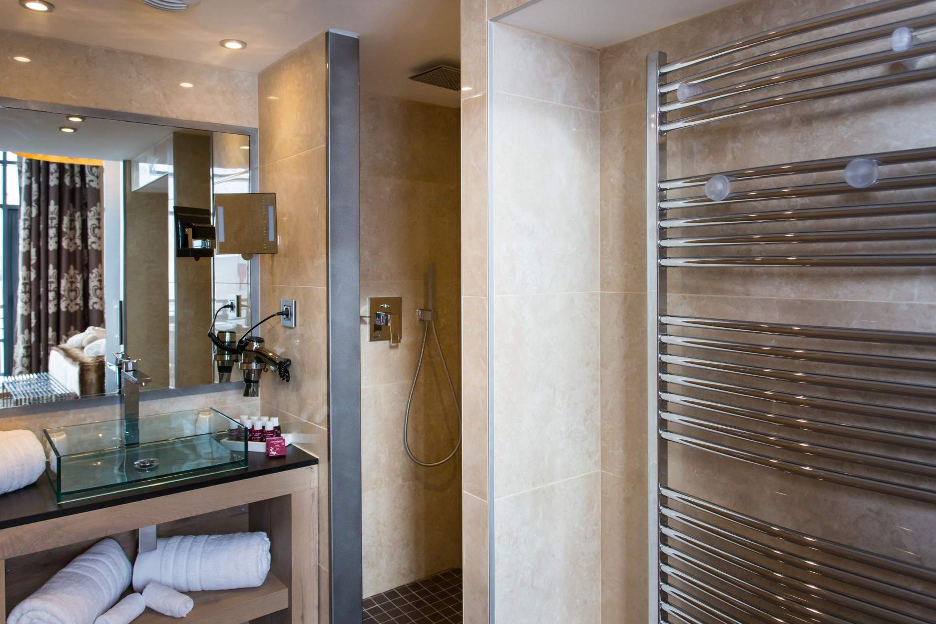 Классические номера площадью 24 кв.м. В оформлении использованы натуральные материалы — дерево, камень и даже мех, что придает стилю брутальности. В каждом из номеров есть большая ванная комната с люксовыми уходовыми средствами и всеми необходимыми банными принадлежностями, а также балкон с видом на город.