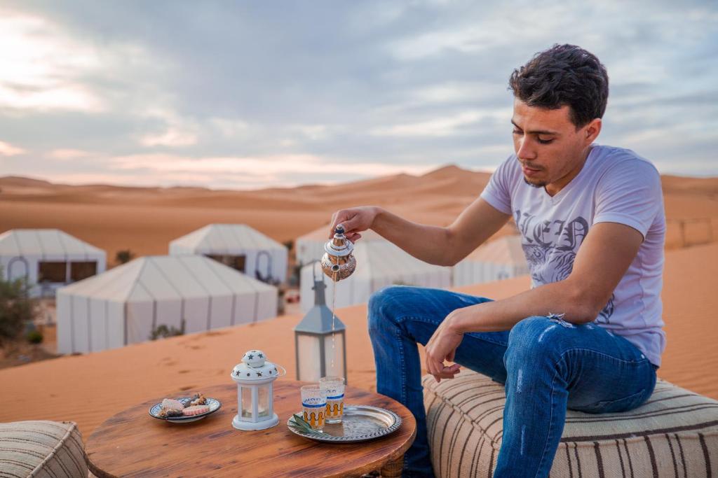 Этот палаточный лагерь предлагает настоящую роскошь среди дюн Эрг-Шебби: просторные шатры оснащены кондиционерами, отдельными ванными и неповторимыми видами на пустыню. Вечером гости собираются у общих костров, где звучит традиционная музыка и подают глиняные горшки с тушёным мясом и фруктовыми десертами. Для желающих доступны прогулки на верблюдах на закате и утренние экскурсии по барханам. Особая гордость лагеря — команда из местных берберов, которые делятся знаниями о пустынных традициях.